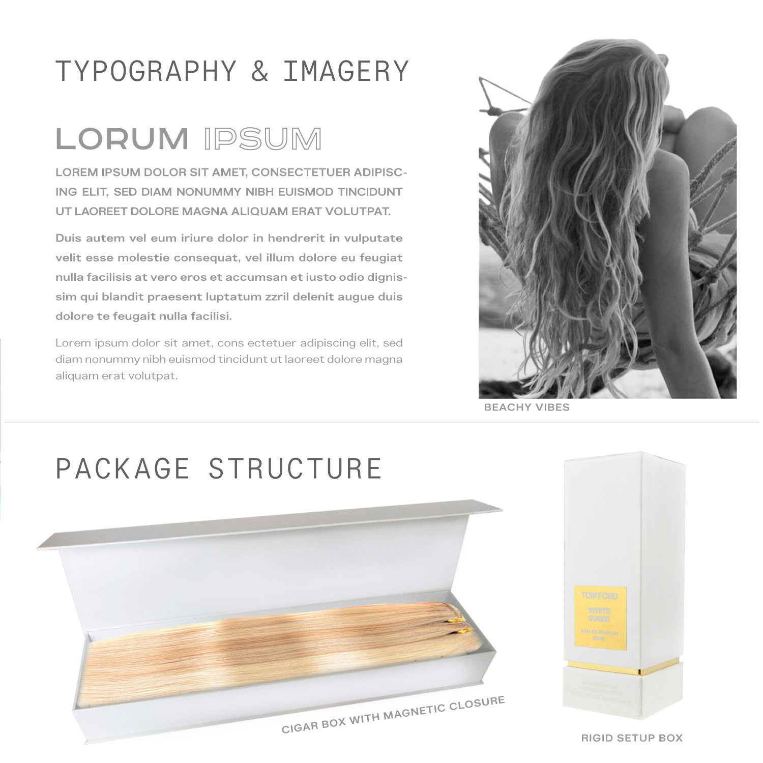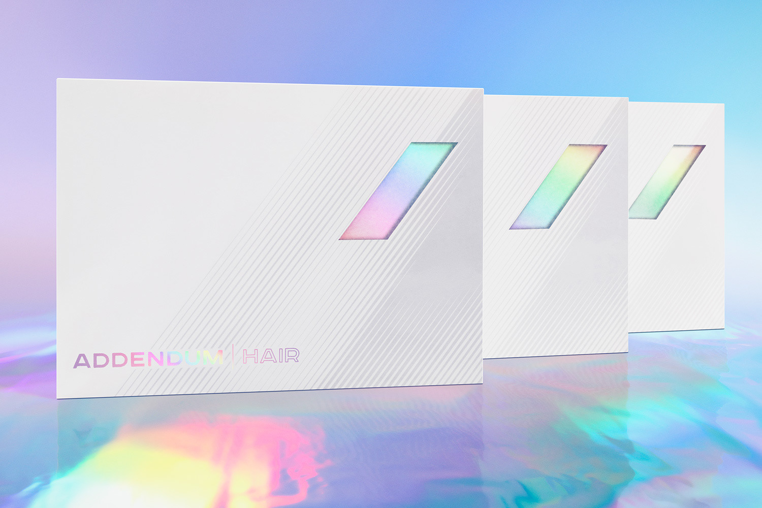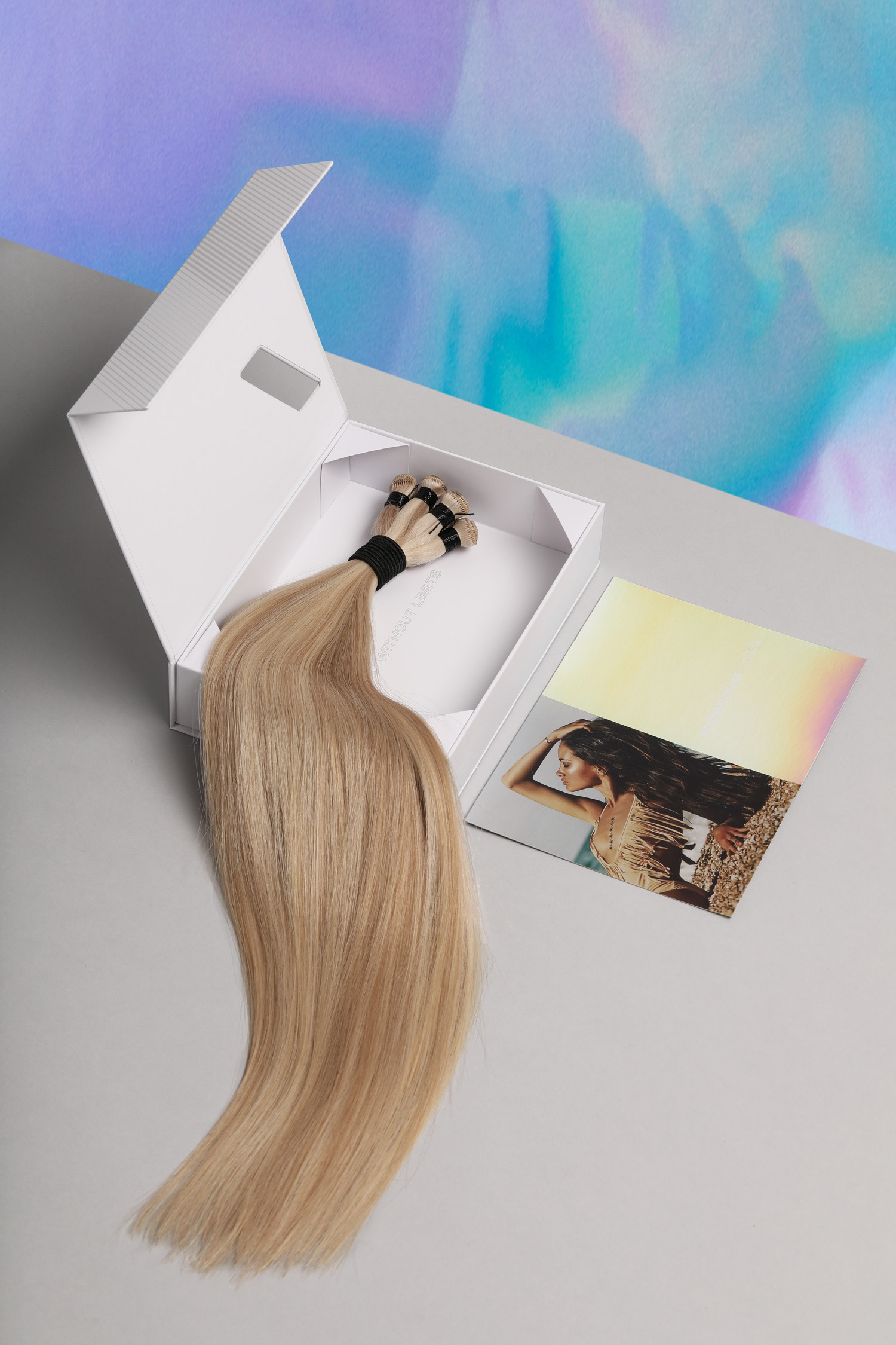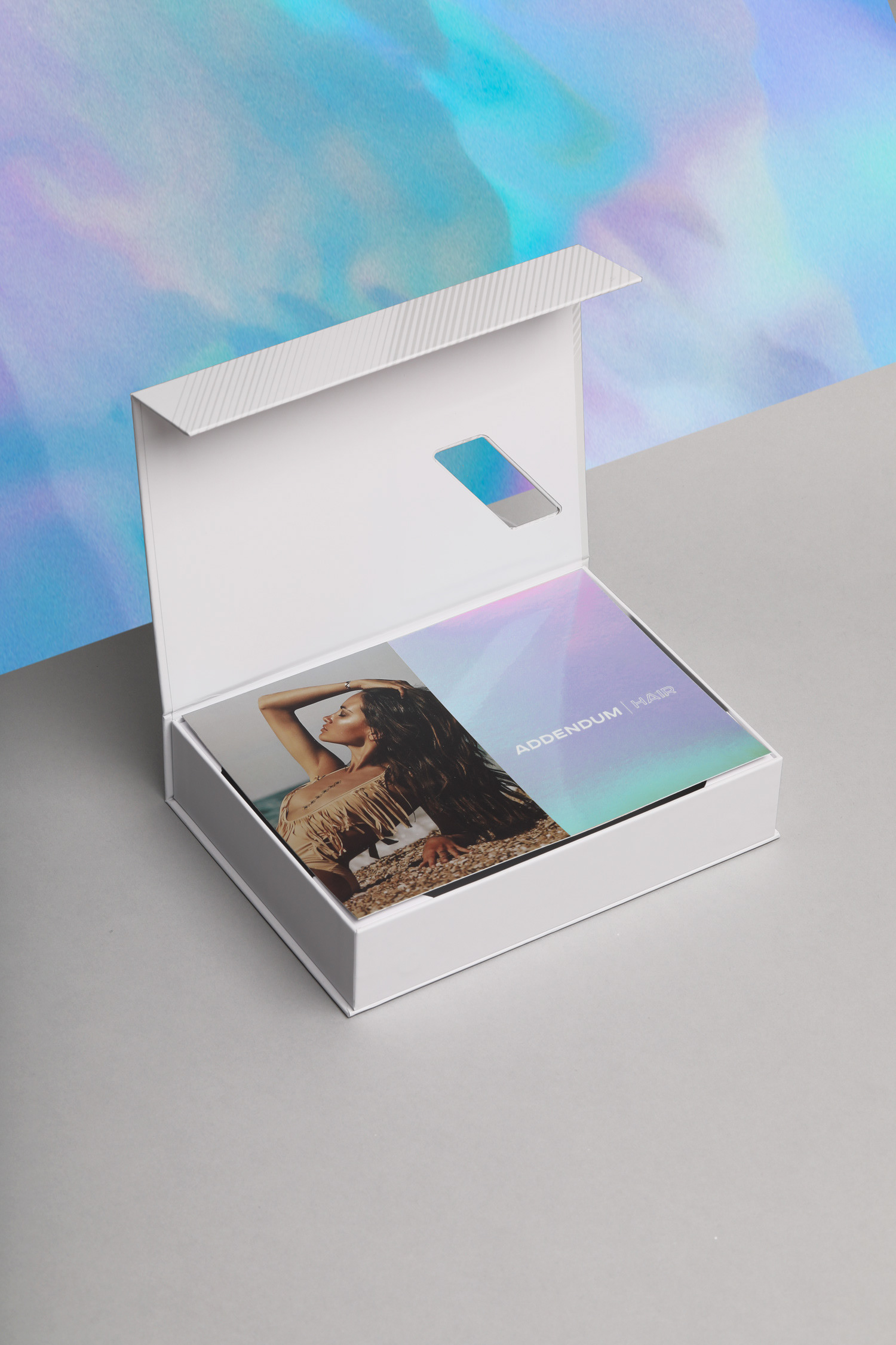 Addendum Hair Extensions Box — branding, package, and graphic design for a premium hair extensions brand by Chris DiGiacomo, Miami.