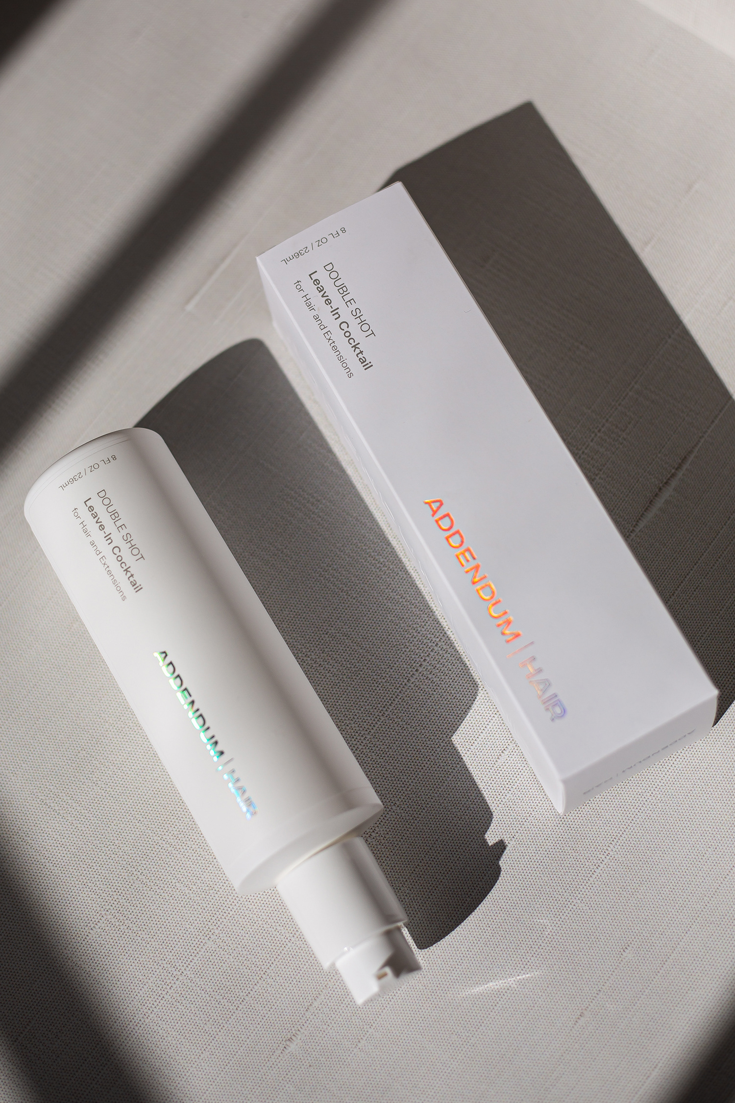 Addendum Hair DOUBLESHOT — branding, package, and graphic design for a premium leave-in haircare product by Chris DiGiacomo, Miami.