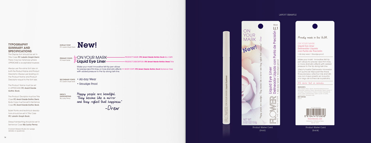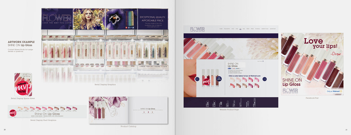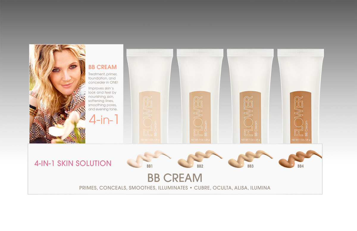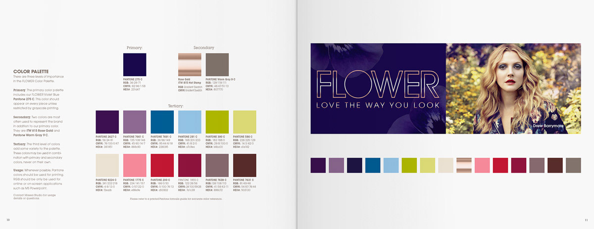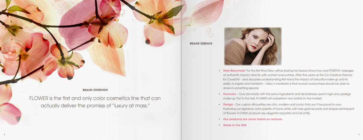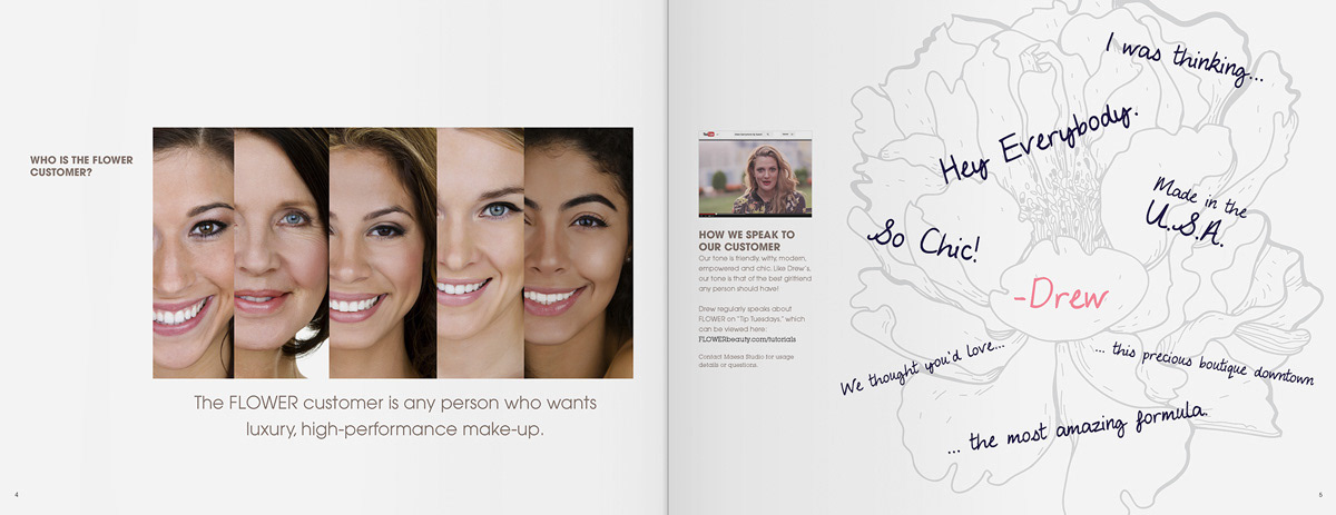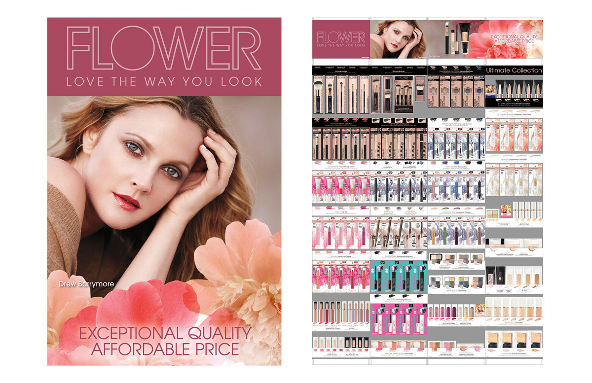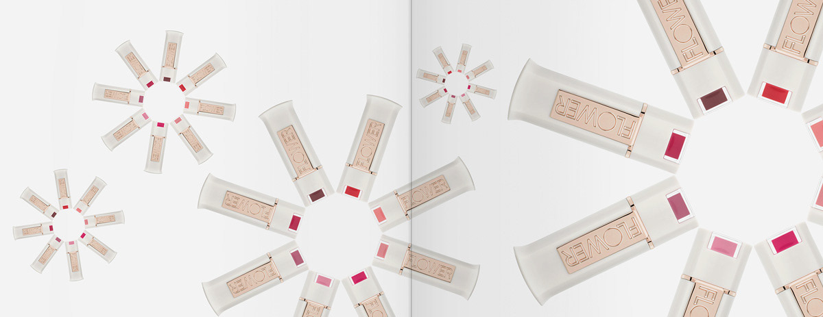 FLOWER by Drew Barrymore — branding, package, and graphic design for a celebrity beauty brand by Chris DiGiacomo, Miami.
